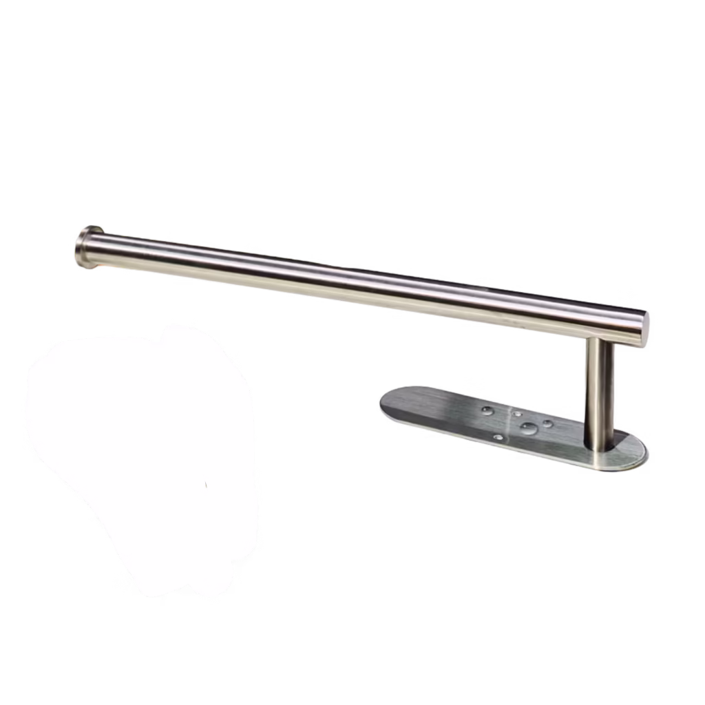 Made of 304 grade stainless steel paper / towel holder provides the strong grip on your counter to hang towel, paper or foil paper, just teardown the protective tape from adhesive and palace the holder on smooth surface, it has two installation method if wall is not suitable for adhesive tape two screws with caps and screws expansion come with this holder just insert expansion screw in hole tight the screw and close the nuts with caps.